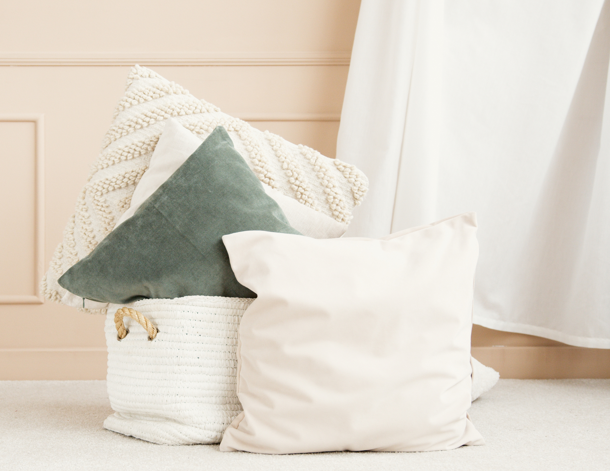 Declutter with purpose: Use open shelving sparingly and choose breathable storage like woven bins or linen boxes.